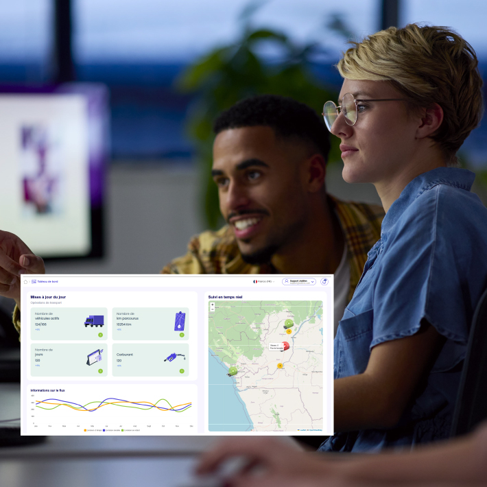 Monitoring key indicators with simple graphical visualization, including curves representing speed and consumption variations.
